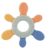 Spécialement conçu pour soulager et appaiser efficacement les gencives douloureuses de bébé lors des poussées dentaires grâce à ses reliefs massants – Bi-texture : caoutchouc doux et plastique rigide